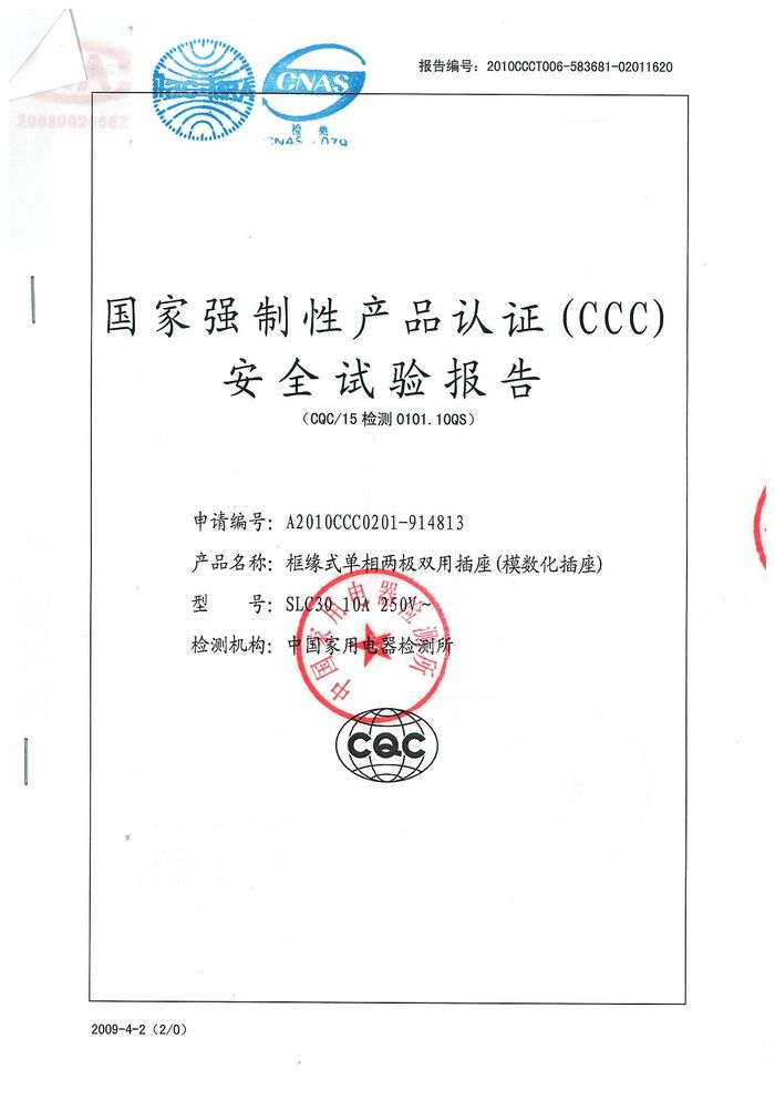 SLC30模數(shù)化插座資質(zhì)證書(shū)