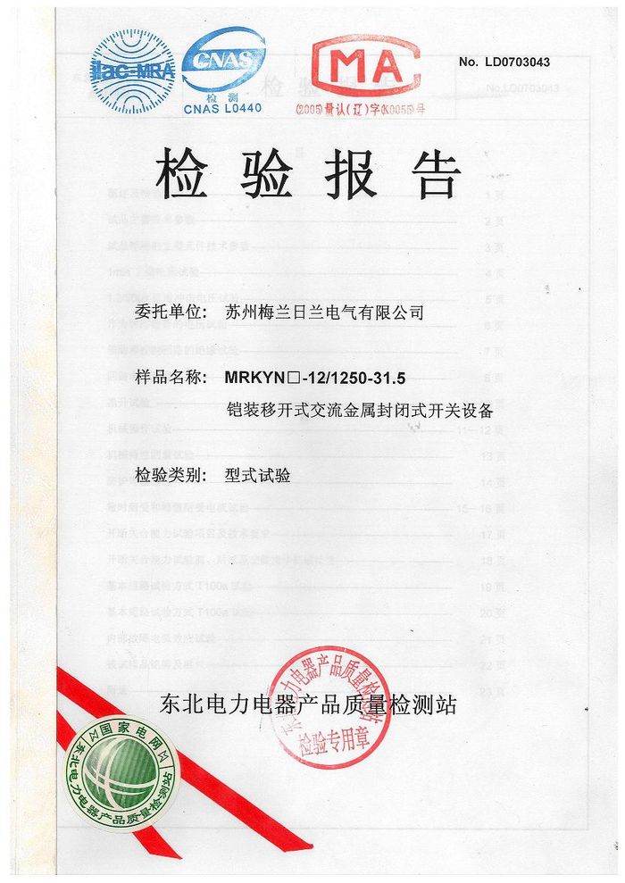 (成套)MRKYN封閉開關(高壓柜)資質證書