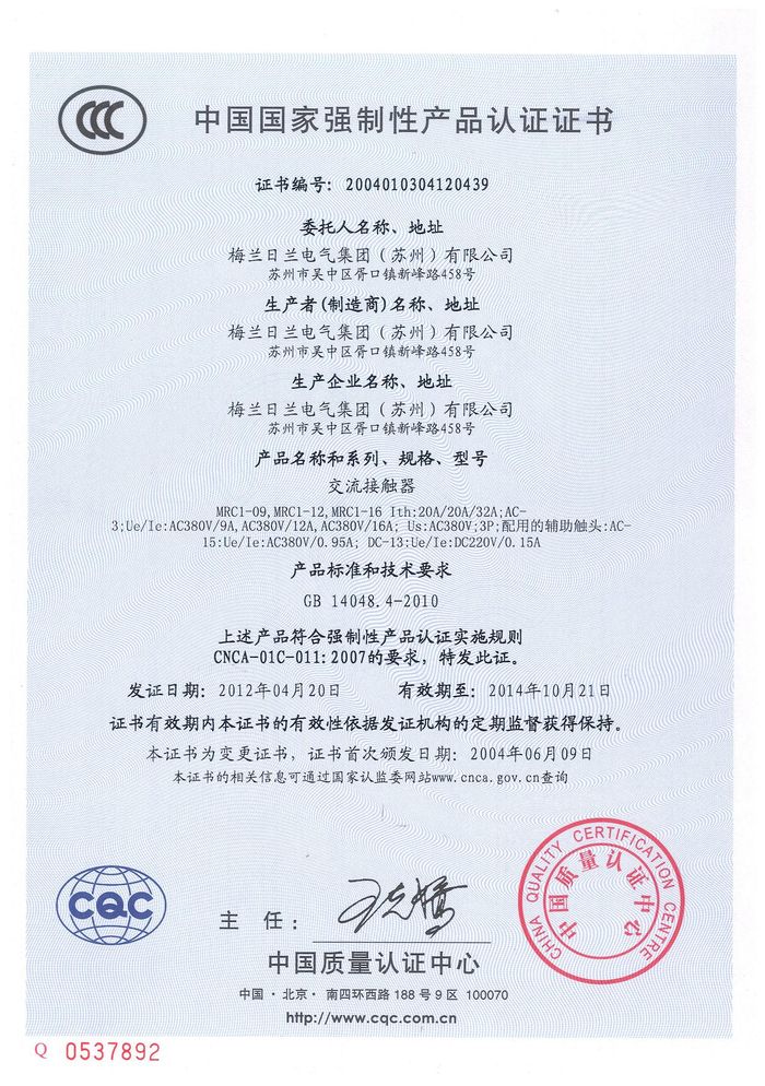 MRC1-09交流資質(zhì)證書