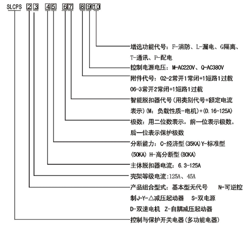 用戶在訂貨時應寫明SLCPS控制與保護開關(guān)電器的產(chǎn)品型號、規(guī)格、短路脫扣器額定電流、智能控制器額定工作電流、負載性質(zhì)、線圈控制電壓、接線方式等內(nèi)容。