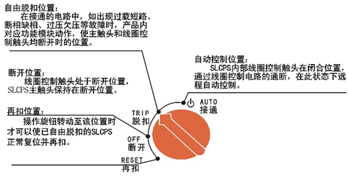 SLCPS操作機構(gòu)的工作狀態(tài)在主體面板上的符號及指示器位置含義如下圖 所示。